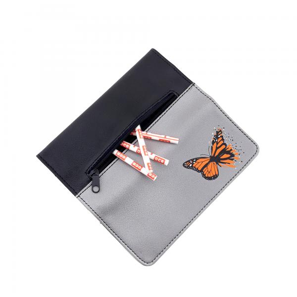 Perabags tütün kesesi, tütününü, kağıdını ve filtrelerini düzenli şekilde taşıman için şık ve pratik bir çözüm sunar. Zarif kelebek tasarımıyla hafif ve estetik bir görünüm sunan bu model, sade şıklığı sevenler için idealdir. Bu desen için siyah renk deri görünümlü vinlex tercih edilmiştir. Günlük kullanımda hem pratik hem dikkat çekici bir deneyim sağlar.
