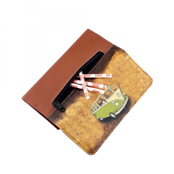 İç kısmında sigara kağıdı için özel bölme yer alırken, arka yüzeyde bulunan fermuarlı cep filtrelerini düzenli şekilde saklaman için idealdir. Kompakt yapısı sayesinde cebinde veya çantanda kolayca taşınır.